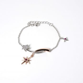18K Rose Gold Plated Northstar Link Bracelet for Kids – 925 Sterling Silver.