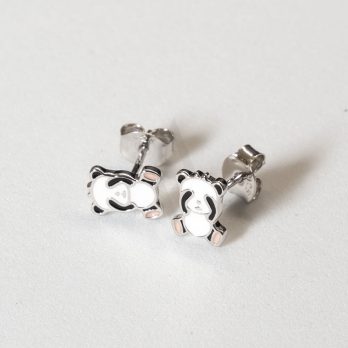 Rhodium Plated 925 Sterling Silver Panda Jewelry Earring for Kids.