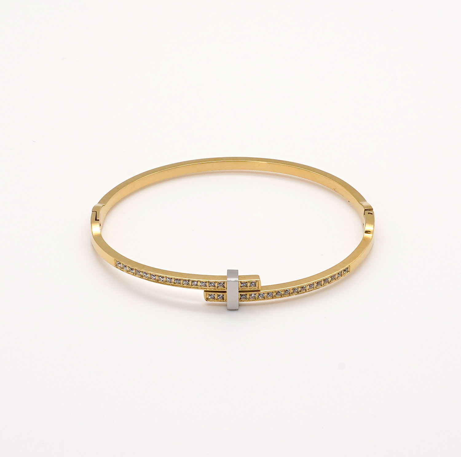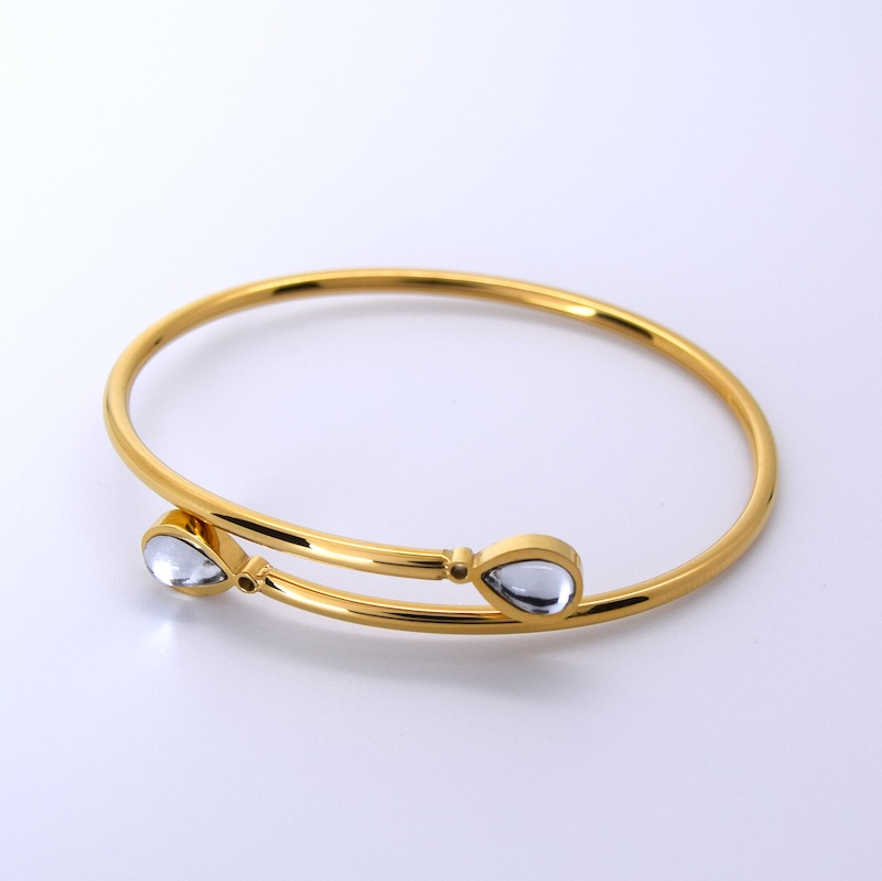 Our 18K Gold Plated Baguette Bangle redefines classic charm, offering a timeless sparkle that’s both anti-tarnish and hypoallergenic. A sophisticated touch to any ensemble. 💫✨