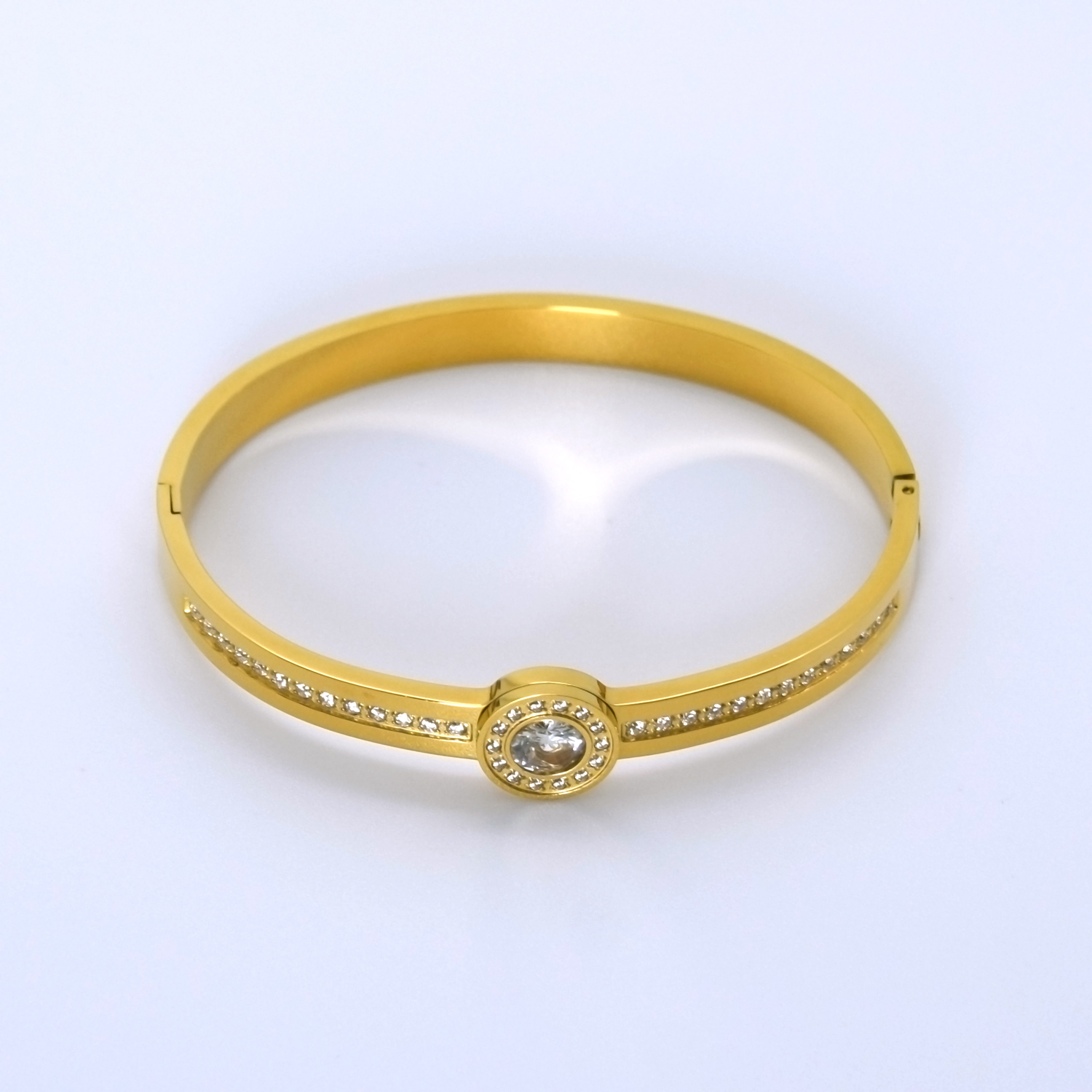 Our 18k Gold Plated Zircon Stone Bangle is the epitome of sparkle and elegance, designed to be both anti-tarnish and hypoallergenic. Elevate any outfit with this exquisite piece. 💎✨